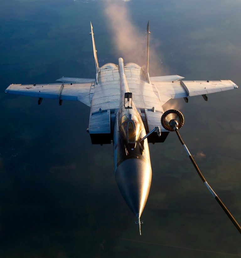 Πετά σε ύψος 25 χιλιομέτρων και όπως ισχυρίζονται οι Ρώσοι έχει απόλυτη αεροπορική υπεροχή στα 18.000 μέτρα. Επιχειρώντας από απομακρυσμένες βάσεις, το σχεδόν τριηχητικό MiG-31 (2,83 Μαχ) είναι η πρώτη γραμμή άμυνας της Ρωσικής Αεροπορίας: μπορεί να μην είναι καινούργιο αλλά είναι σε θέση να κάνει πολλούς να ιδρώσουν καθώς το ‘Foxhound’, όπως χαρακτηρίζεται από το ΝΑΤΟ, μπορεί να παρακολουθεί μέχρι 10 στόχους και να πλήττει ταυτόχρονα έξι.