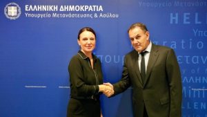 Migration and Asylum Minister Nikos Panagiotopoulos and Deputy Minister Sophia Voultepsi met with Executive Director of the European Union Agency for Asylum (EUAA) Nina Gregori, on Wednesday. The meeting focused on the implementation of the recently approved EU Pact on Migration and Asylum.