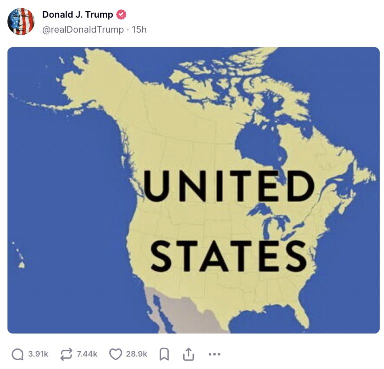 Και μόνο βέβαια που τέτοια απίθανη ερώτηση διατυπώνεται και δίνεται απάντηση, δείχνει το πως έχει αλλάξει η διεθνής πραγματικότητα. Εντωμεταξύ ο ίδιος ο Τραμπ, σε χθεσινή του συνέντευξη, απλώς επιβεβαίωσε πως “μιλά σοβαρά όταν λέει για ενσωμάτωση του Καναδά”, τονίζοντας πως “χάνουμε 200 δις δολάρια το χρόνο (εννοώντας το εμπορικό ισοζύγιο)…είναι πάρα πολλά, αλλά δεν θα είχα αντίρρηση να το κάνω αν είναι η 51η πολιτεία”.