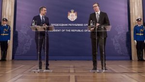 Ο πρωθυπουργός συναντήθηκε με τον πρόεδρο της Δημοκρατίας της Σερβίας, Αλεξάνταρ Βούτσιτς και στις δηλώσεις του αμέσως μετά τόνισε μεταξύ άλλων, ότι βασικός στόχος της Ελλάδας είναι η μεγιστοποιήση της ενεργειακής ασφάλειας στην νοτιοανατολική Ευρώπη και στην Ευρώπη γενικότερα.