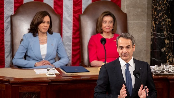 Δεν υπάρχει μεγαλύτερη τιμή για τον εκλεγμένο ηγέτη του λαού που δημιούργησε τη δημοκρατία να απευθύνεται στους αιρετούς του λαού που υπεραμύνθηκαν των δημοκρατικών ιδεωδών από τη στιγμή της δημιουργίας του κράτους τους, ανέφερε απευθυνόμενος στην κοινή σύνοδο της Γερουσίας και της Βουλής των Αντιπροσώπων, στο Κογκρέσο των ΗΠΑ ο Κυριάκος Μητσοτάκης, ο πρώτος Έλληνας πρωθυπουργός που μιλά ενώπιον των μελών των δύο αμερικανικών νομοθετικών σωμάτων.