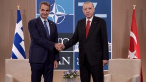 Ο πρωθυπουργός Κυριάκος Μητσοτάκης συναντήθηκε, στο περιθώριο της Συνόδου Κορυφής του ΝΑΤΟ, στην Ουάσιγκτον, με τον Πρόεδρο της Τουρκίας Ρετζέπ Ταγίπ Ερντογάν.