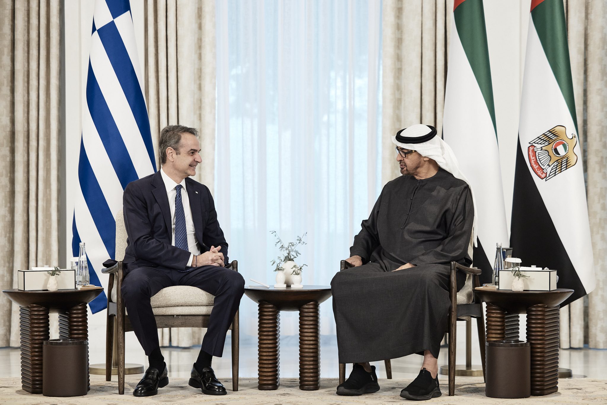 O πρωθυπουργός Κυριάκος Μητσοτάκης συναντήθηκε στο Άμπου Ντάμπι με τον Πρόεδρο των Ηνωμένων Αραβικών Εμιράτων, Σεΐχη Mohamed bin Zayed Al Nahyan.