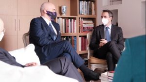 Ικανοποίηση για τη σταθερή βελτίωση των διμερών σχέσεων εξέφρασαν ο Κυριάκος Μητσοτάκης και ο Έντι Ράμα, κατά τη διάρκεια του γεύματος που παρέθεσε νωρίτερα στην οικία του ο πρωθυπουργός προς τιμήν του πρωθυπουργού της Αλβανίας, παρουσία του υπουργού Εξωτερικών Νίκου Δένδια.