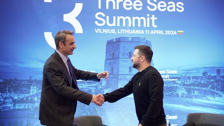 Prime Minister Kyriakos Mitsotakis reaffirmed Greece’s support for Ukraine at his meeting with Ukrainian President Volodymyr Zelensky on Thursday, on the sidelines of the Three Seas Initiative Summit in Vilnius.