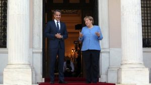 Στο Μέγαρο Μαξίμου υποδέχθηκε την απερχόμενη καγκελάριο της Γερμανίας, Άνγκελα Μέρκελ ο Κυριάκος Μητσοτάκης, ο οποίος έκανε μια ανασκόπηση στις σχέσεις της χώρας μας με τη Γερμανία κατά τη θητεία της, επισημαίνοντας με νόημα τις περιπτώσεις όπου η “δυτική ψυχραιμία ενθάρρυνε την τουρκική αυθαιρεσία”.