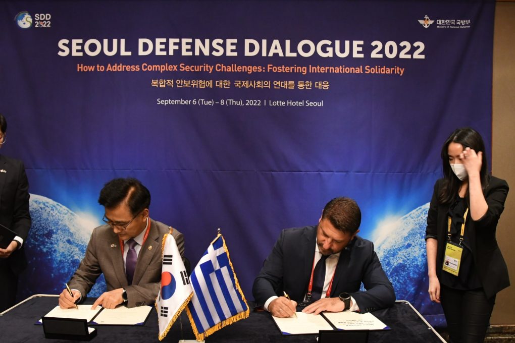 Μνημόνιο Κατανόησης μεταξύ του υπουργείου Εθνικής Άμυνας και της διοίκησης του προγράμματος Αμυντικών Προμηθειών με σκοπό τη συνεργασία τους για την απόκτηση αμοιβαίων οφελών στην αμυντική βιομηχανία και την υλικοτεχνική συνεργασία υπέγραψαν, σήμερα, Τρίτη 6 Σεπτεμβρίου, στη Σεούλ, ο υφυπουργός Εθνικής Άμυνας Νίκος Χαρδαλιάς και ο υπουργός Αμυντικών Εξοπλισμών της Δημοκρατίας της Κορέας Donghwan Eom.