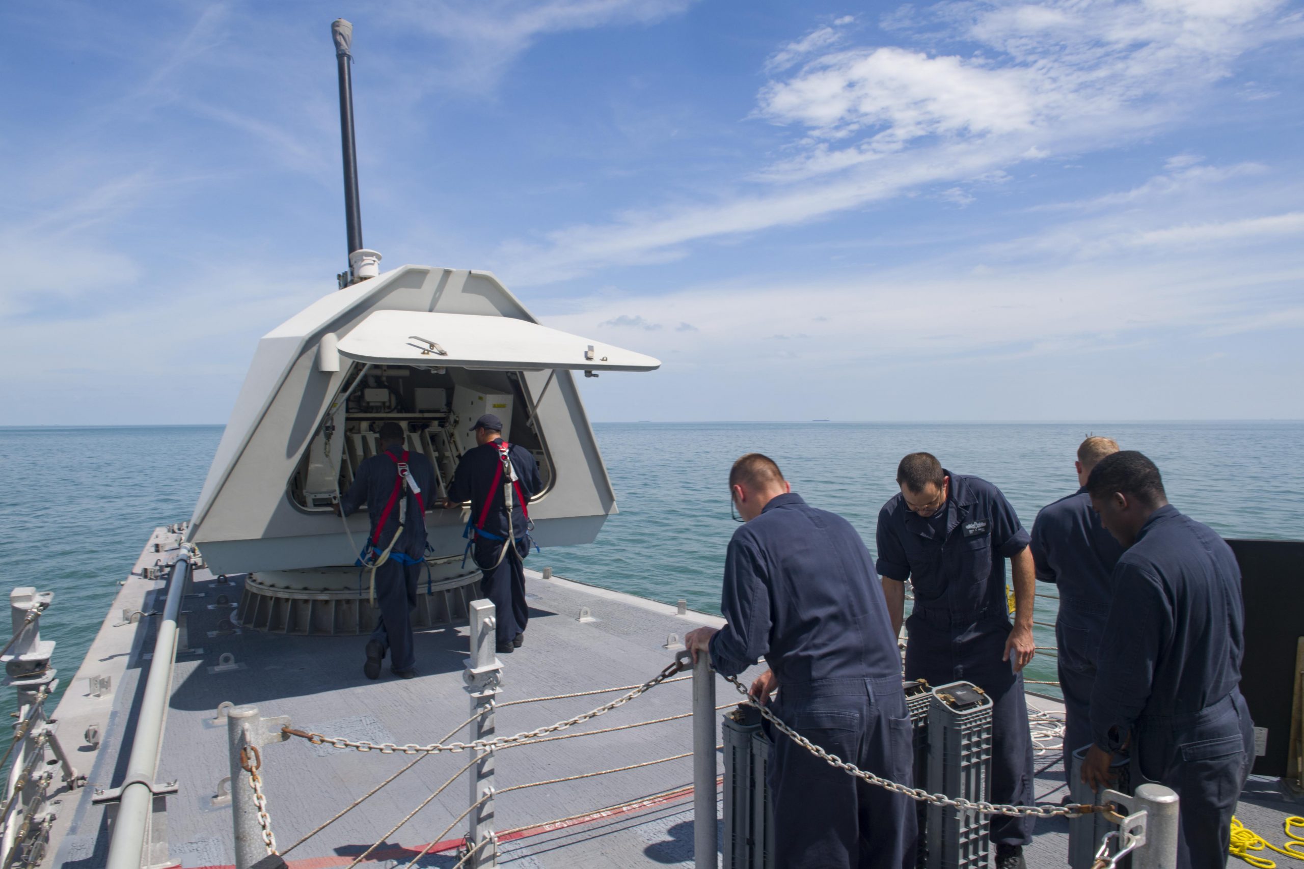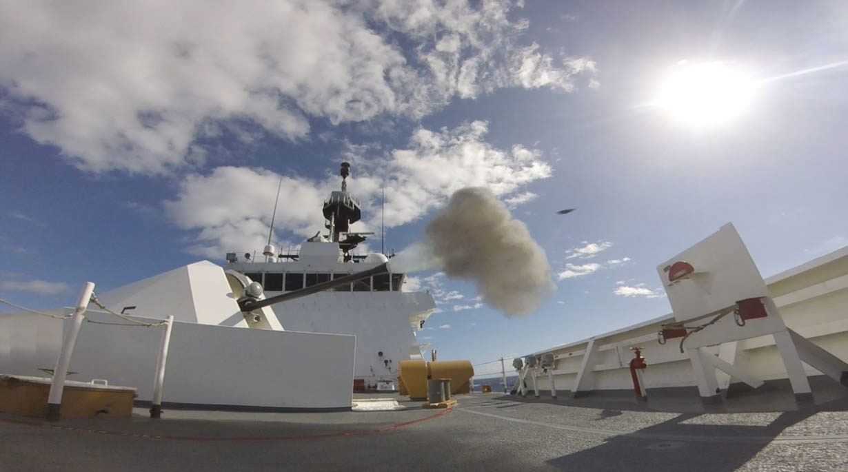 PACIFIC OCEAN (July 17, 2016) Coast Guard crew members fire an MK110 57 mm naval gun system during a live-fire exercise aboard Coast Guard Cutter Stratton (WMSL 752) in support of Rim of the Pacific 2016. Twenty-six nations, more than 40 ships and submarines, more than 200 aircraft and 25,000 personnel are participating in RIMPAC from June 30 to Aug. 4, in and around the Hawaiian Islands and Southern California. The world’s largest international maritime exercise, RIMPAC provides a unique training opportunity that helps participants foster and sustain the cooperative relationships that are critical to ensuring the safety of sea lanes and security on the world’s oceans. RIMPAC 2016 is the 25th exercise in the series that began in 1971. (U.S. Coast Guard photo by Petty Officer 2nd Class Andrew Blackstock/Released)