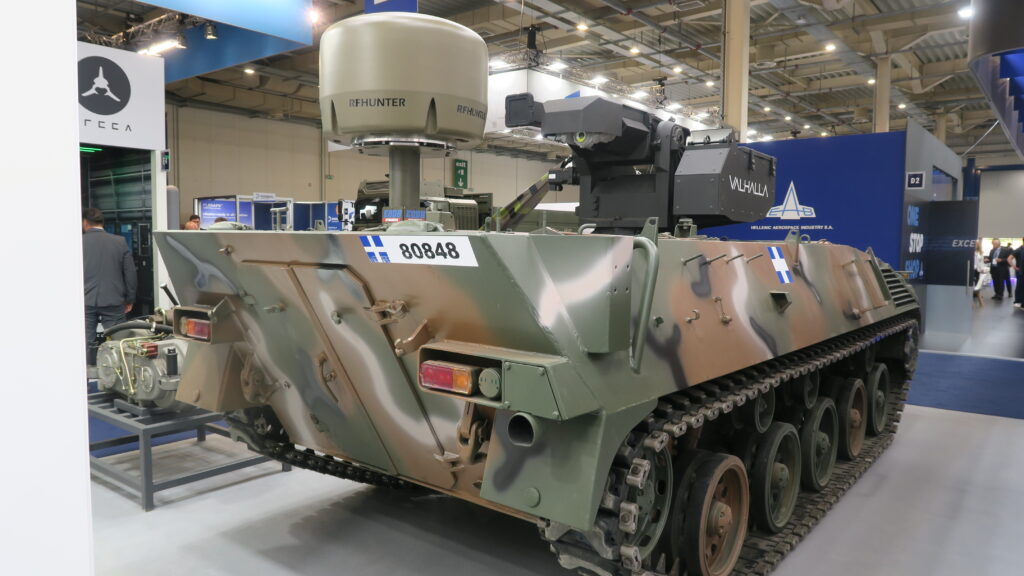 Σύστημα anti-drone RFHunter στο πίσω μέρος του ΤΟΜΑ ΛΕΩΝΙΔΑΣ 300.