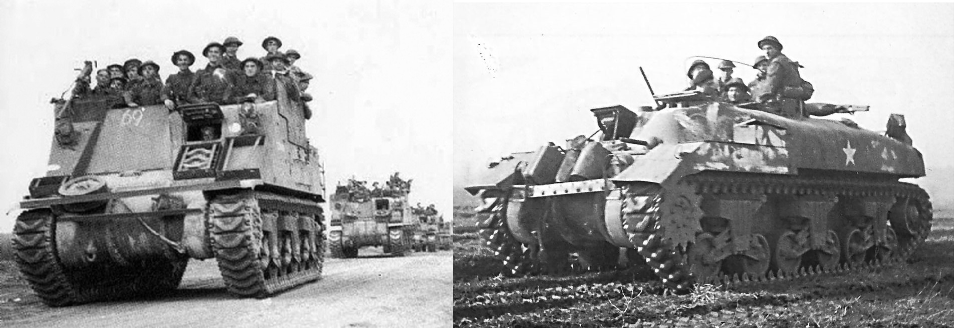 Πολλοί προέκριναν την τοποθέτηση ελαφράς θωράκισης σε φορτηγά και ημιερπυστριοφόρα αλλά οι Καναδοί πήγαν ένα βήμα πιο πέρα, μετατρέποντας άρματα Μ4 Sherman και M3 Grant καθώς και τα M7 Priest, που χρησιμοποιούσαν το σκάφος του Sherman με μια σταθερή υπερκατασκευή θώρακα φέροντας το οβιδοβόλο Μ101 των 105 mm. Με την αφαίρεση του πύργου του άρματος και των πυρομαχικών ή του λίκνου του οβιδοβόλου δημιουργούσαν αρκετό χώρο για μισή ή μία ομάδα μάχης πεζικού που ακολουθούσε τα άρματα μάχης με την ίδια ταχύτητα, στο ίδιο έδαφος και κυρίως με ανάλογη προστασία από πυρά. Τα οχήματα αποκλήθηκαν ‘Kangaroo’ και μετέφεραν εκτός από το διμελές πλήρωμα άλλα 6-8-10 άτομα ή και περισσότερα με λίγη “καλή θέληση”. Ατυχώς, κανένας δεν διδάχτηκε από το καναδικό παράδειγμα.