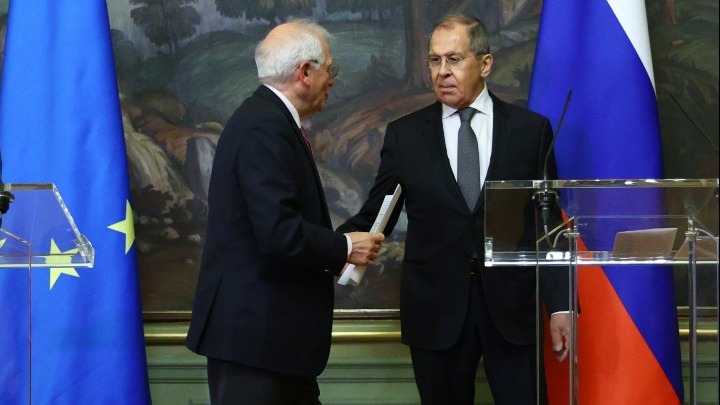 Ο Μπορέλ βρίσκεται από χθες στη Μόσχα για διήμερη επίσκεψη, με σκοπό να ζητήσει την αποφυλάκιση του Ναβάλνι και να εξετάσει την δυνατότητα εξομάλυνσης των σχέσεων της ΕΕ με τη Ρωσία.