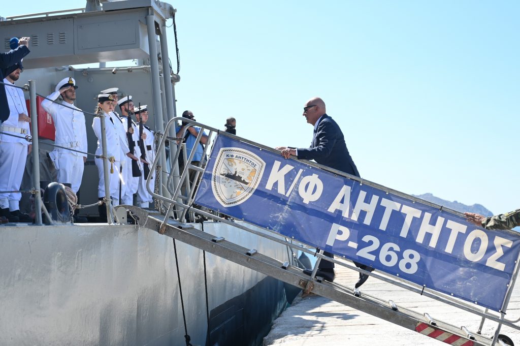 Μετά την τελετή, ο κ. Δένδιας επιβιβάστηκε επί της κανονιοφόρου «Αήττητος» και μετέβη στο σημείο που βυθίστηκε το αντιτορπιλικό με το ηρωικό πλήρωμά του στις 26 Σεπτεμβρίου 1943, όπου έρριψε δάφνινο στεφάνι. Η επίσκεψη στη Λέρο ολοκληρώθηκε με επίσκεψη στη Λέσχη Εθνοφυλακής Λέρου.