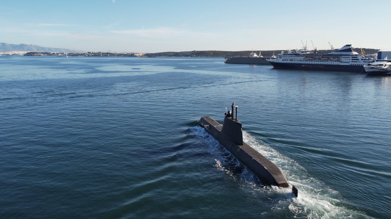 Ο υπουργός Εθνικής Άμυνας Νίκος Δένδιας επιβιβάσθηκε χθες, Πέμπτη 11 Δεκεμβρίου, στο υποβρύχιο «Πιπίνος» τύπου 214 του Πολεμικού Ναυτικού, από το οποίο παρακολούθησε βολή νέου τύπου τορπίλης «SeaHake mod4» εναντίον στόχου επιφανείας, κατά τη διάρκεια διεξαγωγής της άσκησης «Περισκόπιο».