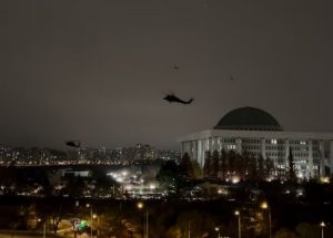 Το Yonhap μετέδωσε ότι το κοινοβούλιο σφραγίστηκε και στρατιωτικά ελικόπτερα προσγειώθηκαν στη στέγη του.