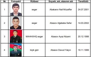 Το υπουργείο κοινοποίησε στον ιστότοπό του έναν κατάλογο με τους στρατιώτες που ισχυρίζεται ότι σκοτώθηκαν κατά τη διάρκεια των 44 ημερών πολέμου, συμπεριλαμβανομένων των ονοματεπώνυμων, καθώς και λεπτομερειών σχετικά με τους βαθμούς τους και την ημερομηνία γέννησής τους.