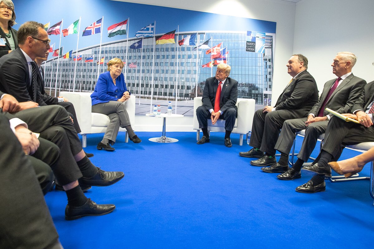 Για μια ακόμη φορά ο Πρόεδρος Τραμπ εξαπέλυσε μύδρους κατά της Γερμανίας. Αφού προκάλεσε ένα μικρό… διπλωματικό σοκ σπάζοντας το πρωτόκολλο και προσφωνώντας την Γερμανίδα Καγκελάριο με το μικρό της όνομα, κατηγόρησε την Γερμανία ότι όχι μόνο δεν ανταποκρίνεται στις οικονομικές της υποχρεώσεις απέναντι στην Συμμαχία (εδώ αποσκοπούσε το ΑΜΕΣΑ που έγραφε με κεφαλαία γράμματα το προεδρικό tweet) αλλά και ότι είναι ενεργειακά όμηρος της Μόσχας «ελεγχόμενη πλήρως από την Ρωσία» προκαλώντας την έντονη αντίδραση της Άνγκελα Μέρκελ.