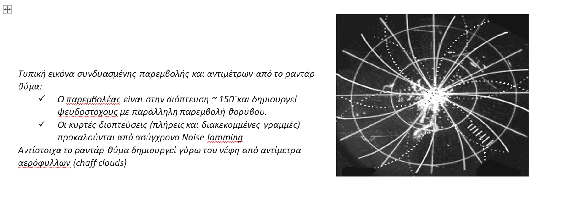 - Ενός εχθρικού ECM το οποίο παρεμβάλλει τις παραμέτρους του ραντάρ θύματος