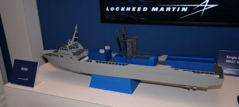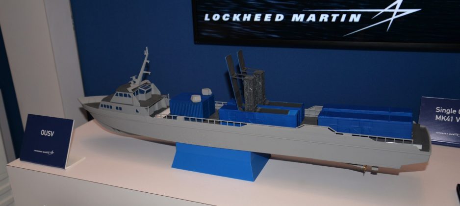 Μια τέτοια πρόταση είναι το Optionally Unmanned Surface Vessel (OUSV) της Lockheed Martin, το οποίο έχει παρουσιαστεί πρόσφατα ως προσχέδιο για σκάφος είτε μη επανδρωμένο είτε επανδρωμένο. Όπως φαίνεται στην πρόταση, η μεγάλη επιφάνεια φόρτωσης (με την γέφυρα του σκάφους πολύ μπροστά, να θυμίζει κάτι σε ταχύ φέριμποτ) χωρά 4 κοντέινερ των 40 ποδών και άλλα 2 των 20 ποδών στην επιφάνεια της. Τα 40αρια κοντέινερ περιέχουν το καθένα ένα τετραπλό ΜΚ41, που με ειδικό μηχανισμό μετακινειται σε όρθια θέση για την εκτόξευση. Έτσι συνολικά το σκάφος (στη μορφή αυτή που μπορεί να μεγαλώσει-μικρύνει) διαθέτει 16 κελιά ΜΚ41 για οποιοδήποτε μίγμα όπλων. Τα δύο 20αρια κοντέινερ, στην ίδια μελέτη, περιέχουν ένα σύστημα ηλεκτρονικού πολέμου SEWIP Block 2, αλλά μπορούν να φιλοξενήσουν και διαφορετικά πακέτα εξοπλισμού, όπως π.χ. κάποιο ραντάρ.