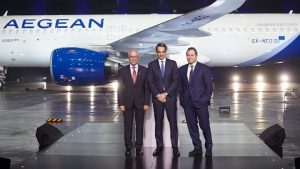 Νέα εποχή ανάπτυξης ξεκινά για την Aegean, με την παραλαβή των τριών πρώτων αεροσκαφών νέας γενιάς Airbus A320neo και το νέο λογότυπο της, που παρουσιάστηκαν σε ειδική εκδήλωση, σήμερα, στην τεχνική βάση της εταιρείας, στον Διεθνή Αερολιμένα Αθηνών, παρουσία του πρωθυπουργού Κυριάκου Μητσοτάκη, εκπροσώπων της πολιτείας, της επιχειρηματικής κοινότητας, φορέων και εργαζομένων.