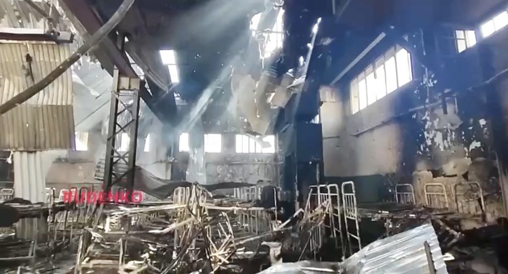 Σύμφωνα με το “Reuters”, το κέντρο βρισκόταν κοντά στην πόλη Ολένιβκα. Βίντεο που κυκλοφόρησε από Ρώσο πολεμικό ανταποκριτή δείχνει χαλάσματα και απανθρακωμένα υπολείμματα πτωμάτων. Στο κέντρο κρατούνταν 193 αιχμάλωτοι, περιλαμβανομένων μελών του τάγματος Αζόφ. Σύμφωνα με το “Interfax”, που επικαλείται τον ηγέτη των αυτονομιστών Denis Pushilin, στο κτίριο δεν υπήρχαν ξένοι κρατούμενοι.