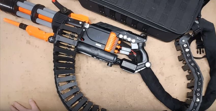 Υπάρχει όμως ένα μικρό “πρόβλημα”. Δεν μιλάμε για όπλο που ρίχνει κανονικές σφαίρες, αλλά πλαστικά σφαιρίδια τύπου NERF. Ακόμη και έτσι όμως, το αποτέλεσμα είναι εντυπωσιακό.