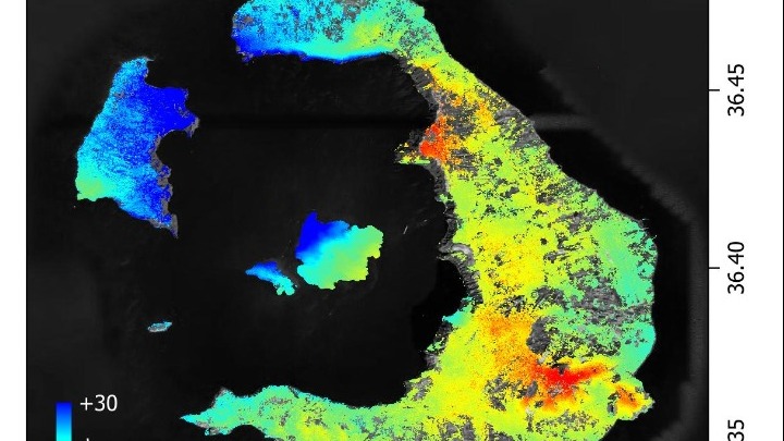 Ενδείξεις δραστηριότητας στο βόρειο τμήμα της καλδέρας της Σαντορίνης τον Ιούλιο του 2024 και εδαφική παραμόρφωση που εξελίχθηκε έως και τα τέλη του έτους δείχνουν τα πρώτα ευρήματα του ΑΠΘ με τη χρήση δορυφορικών δεδομένων ραντάρ COSMO-SkyMed σε συνεργασία με την ASI. Επίσης, τα ίδια δεδομένα δείχνουν πως από τον Φεβρουάριο του 2025 παρατηρήθηκε μία πρόσθετη εδαφική παραμόρφωση που συνδέεται με την τεκτονικο-ηφαιστειακή δραστηριότητα της ευρύτερης περιοχής της Ανύδρου.