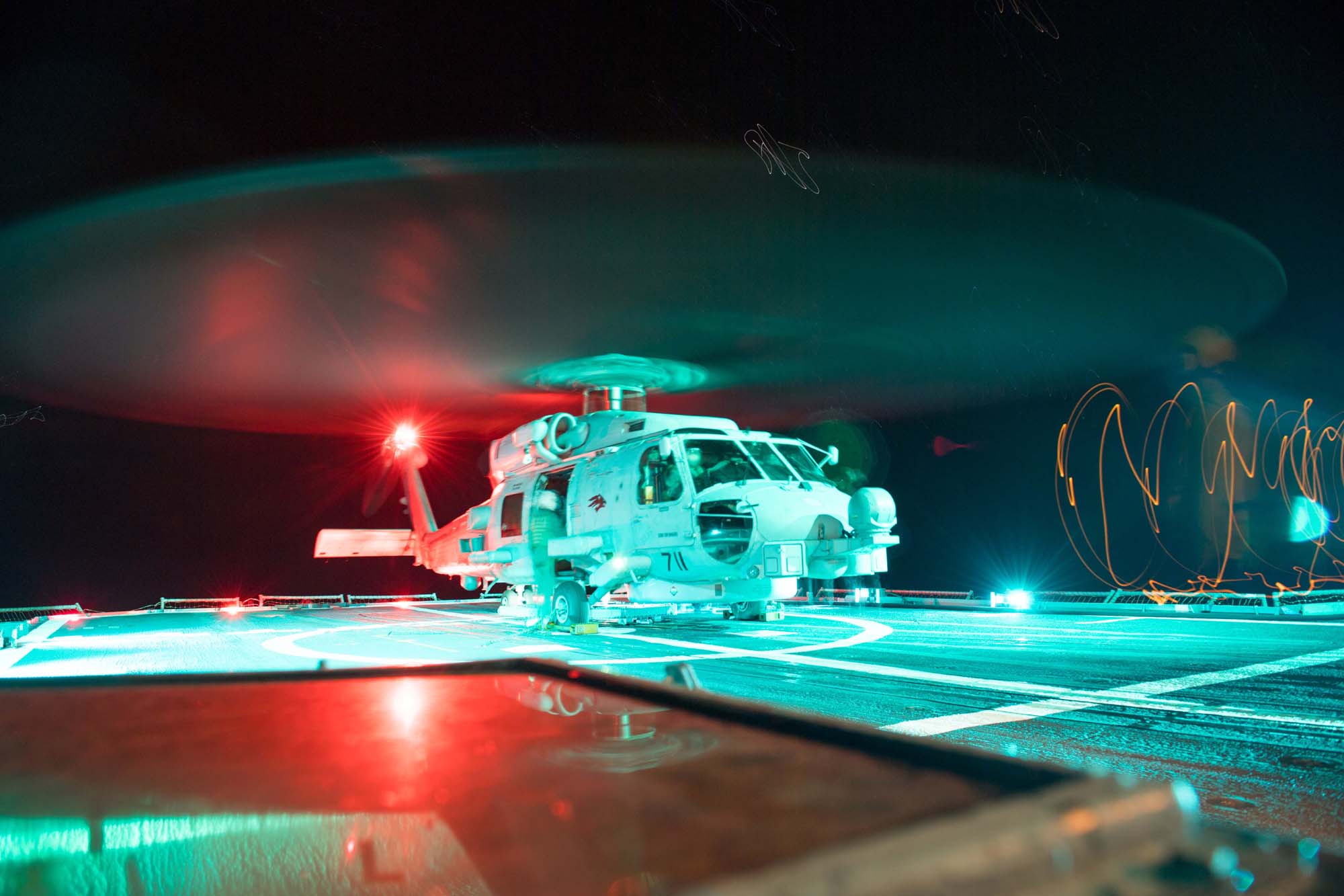 PACIFIC OCEAN (June 21, 2017) An MH-60R Sea Hawk helicopter assigned to the “Wolfpack” of Helicopter Maritime Strike Squadron (HSM) 75 departs the Ticonderoga-class guided-missile cruiser USS Princeton (CG 59). The ship is underway in the U.S. 7th fleet area of operations. The U.S. Navy has patrolled the Indo-Asia-Pacific routinely for more than 70 years promoting regional peace and security. (U.S. Navy photo by Mass Communication Specialist 3rd Class Kelsey J. Hockenberger/Released)