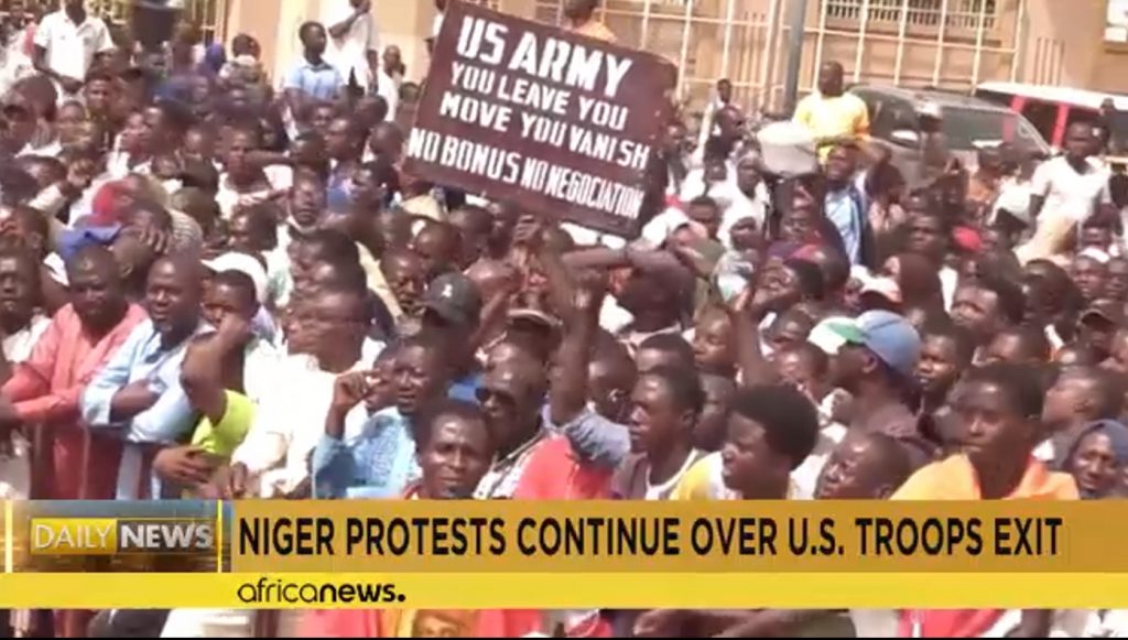 Είχε σε μεγάλο βαθμό προαναγγελθεί, πλέον συνέβη. Στο Νίγηρα λοιπόν, ζητήθηκε επίσημα από τις ΗΠΑ να αποχωρήσει η στρατιωτική τους αποστολή στη χώρα, περίπου 1.000 ατόμων, κάτι που θα οδηγήσει και στο κλείσιμο των 2 βάσεων τους, της 101 και της 201 όπως αποκαλούνται, οι οποίες χρησίμευαν για πτήσεις μη επανδρωμένων. Μάλιστα τις τελευταίες μέρες έγιναν και μικρού μεγέθους αντιαμερικανικές διαδηλώσεις στα βόρεια της χώρας.