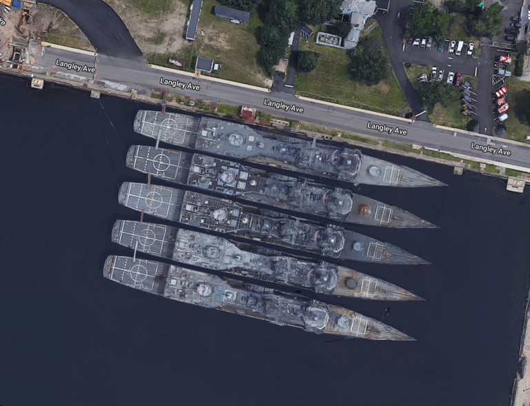 5 φρεγάτες Ο.Η. Perry σε απόθεση στη Φιλαδέλφεια. Τα πλοία εικάζεται πως βρίσκονται σε άσχημη κατάσταση, δεδομένου πως η σκουριά τους φαίνεται από το διάστημα…
