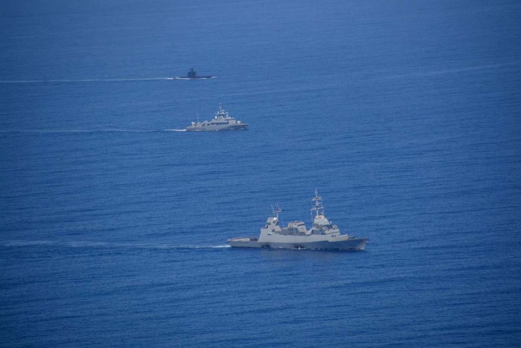 Σύμφωνα με την «The Jerusalem Post», το Ισραηλινό Ναυτικό συμμετείχε με την κορβέτα «INS Lahav», μία πυραυλάκατο Sa’ar 4.5 και το υποβρύχιο «INS Tanin». Η «INS Lahav» εμφανίζεται ως η μόνη από τις Sa’ar 5 που έχει εγκατεστημένο το ραντάρ EL/M-2248 MF-STAR και τους Α/Α πυραύλους Barak 8, ενώ έχει δοκιμαστεί να μεταφέρει τη ναυτική έκδοση του Iron Dome και το υπερηχητικό Κ/Β κατά πλοίων Gabriel V. Το «INS Tanin» θεωρείται εξίσου προηγμένο με το «ΠΙΠΙΝΟΣ» και διαθέτει σύστημα αναερόβιας πρόωσης. Να θυμίσουμε, το Πολεμικό Ναυτικό (ΠΝ) πήρε μέρος με την φρεγάτα «ΛΗΜΝΟΣ», την πυραυλάκατο «ΓΡΗΓΟΡΟΠΟΥΛΟΣ» και το υποβρύχιο «ΠΙΠΙΝΟΣ».