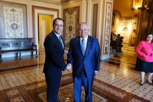 Με τη συνάντηση που είχε στο Καπιτώλιο με τον επικεφαλής της μειοψηφίας στην Επιτροπή Εξωτερικών Σχέσεων της Γερουσίας, Ρόμπερτ Μενέντεζ, ο Yπουργός Εξωτερικών, Νίκος Χριστοδουλίδης ολοκλήρωσε την τριήμερη επίσκεψή του στην Ουάσιγκτον, όπου έλαβε μέρος στο συνέδριο του AIPAC, της μεγαλύτερης οργάνωσης του αμερικανο-εβραϊκού λόμπι.