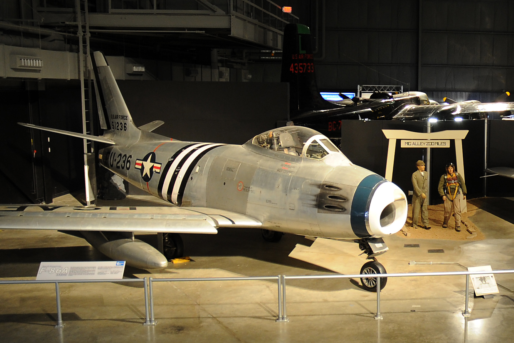Είναι χαρακτηριστική η έκφραση του Σοβιετικού συνταγματάρχη Pepelyaef, πρώτου άσσου της Κορέας με 23 καταρρίψεις (βλ. τεύχος 154), που παρομοίασε τα πλήγματα των 12,7 mm με… στραγάλια! Πράγματι, υπολογίστηκε ότι, κατά μέσο όρο, χρειάζονταν τουλάχιστον 1.000 από τις 1.602 βολίδες ενός F-86 για να καταρριφθεί ένα MiG. Αργότερα, μετά την Κορέα, προστέθηκαν και κατευθυνόμενα βλήματα αέρος-αέρος ΑΙΜ-9, που πρωτοχρησιμοποιήθηκαν στη μάχη το φθινόπωρο του 1958, από την Ταϊβάν εναντίον της Κίνας. Αν και το Sabre ήταν κατεξοχήν αεροπλάνο αεροπορικής υπεροχής (αέρος-αέρος), σε δευτερεύοντα ρόλο κρούσης (αέρος-εδάφους), μεταφέρονταν εξωτερικώς δύο συμβατικές βόμβες των 227 ή των 454 κιλών ή μέχρι 16 ρουκέτες των 127 mm.