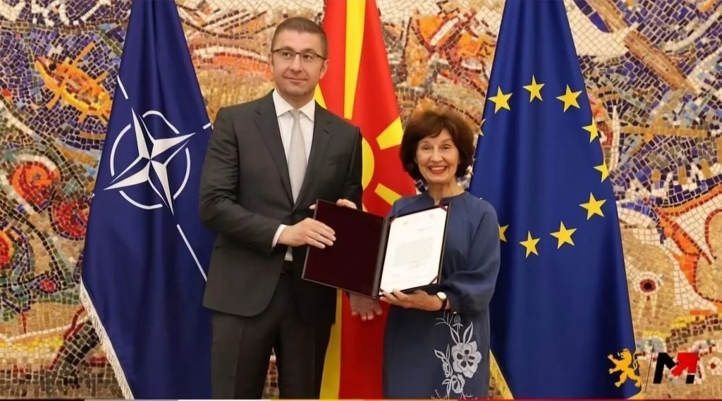 H πρόεδρος της Δημοκρατίας της Βόρειας Μακεδονίας, Γκορντάνα Σιλιάνοφσκα, επέδωσε σήμερα την εντολή σχηματισμού κυβέρνησης στον αρχηγό του VMRO-DPMNE, Χρίστιαν Μίτσκοσκι, το κόμμα του οποίου επικράτησε στις βουλευτικές εκλογές στη χώρα που διεξήχθησαν στις 8 Μαΐου.