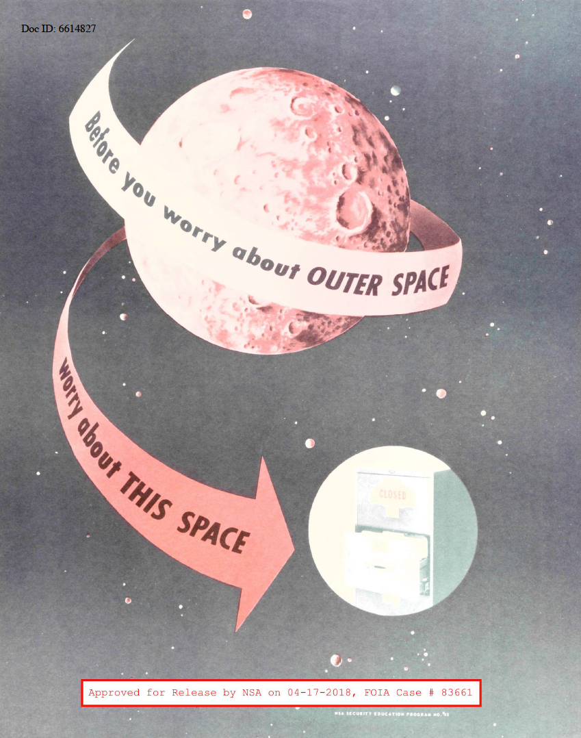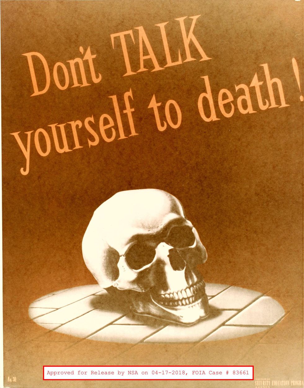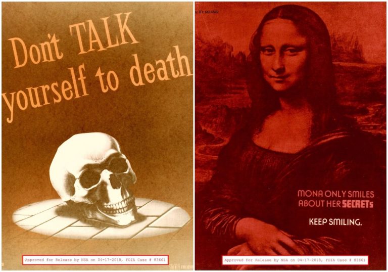 Πρόσφατα, δόθηκαν στη δημοσιότητα από την Εθνική Υπηρεσία Πληροφοριών των ΗΠΑ (NSA), μια σειρά αφισών που προορίζονταν για την ενημέρωση και κυρίως την επαγρύπνηση του προσωπικού της, αναφορικά με το κίνδυνο ακούσιας διαρροής πληροφοριών προς τον “εχθρό”.