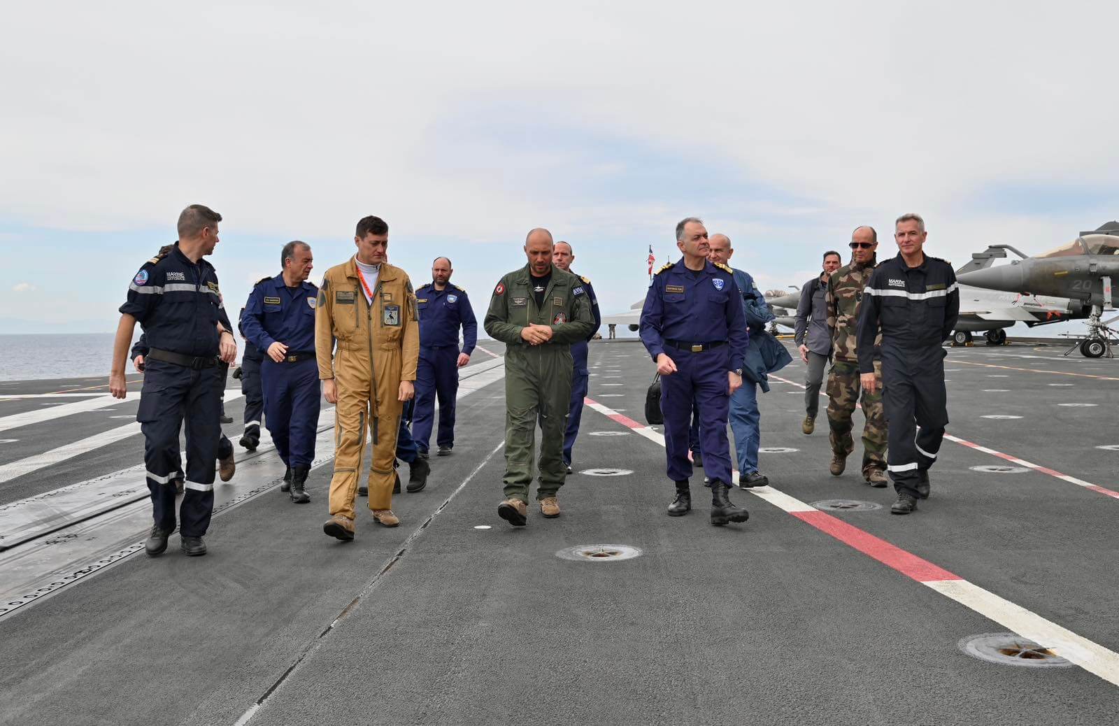 Ο Αρχηγός ΓΕΝ Αντιναύαρχος Δημήτριος – Ελευθέριος Κατάρας ΠΝ, εκπροσωπώντας και τον Αρχηγό ΓΕΕΘΑ Στρατηγό   Δημήτριο Χούπη, πραγματοποίησε εθιμοτυπική επίσκεψη στο γαλλικό αεροπλανοφόρο, όπου τον υποδέχθηκε ο Γάλλος Διοικητής της Ναυτικής Δύναμης Task Force 473, Υποναύαρχος Jacques Mallard και ο Κυβερνήτης του αεροπλανοφόρου, Πλοίαρχος Georges-Antoine Florentin.