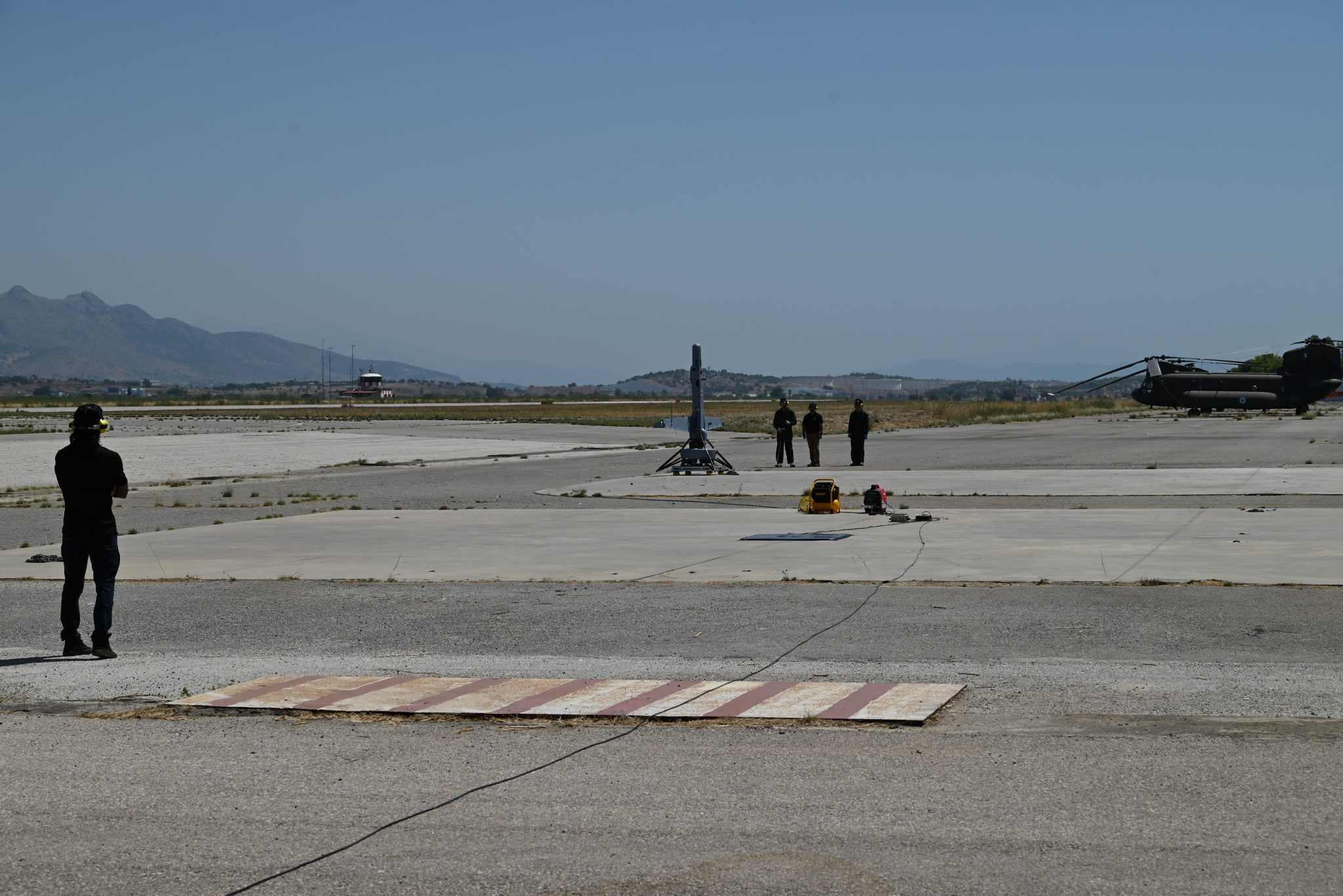 Στη συνέχεια, ενόψει της αντιπυρικής περιόδου, ο Αρχηγός επισκέφθηκε το 2ο Συγκρότημα Αεροπορίας Στρατού (2ο ΣΥΑΣ) στο Στρατόπεδο «ΛΓΟΣ (ΠΒ) ΣΠΥΡΙΔΩΝ ΔΕΛΑΠΟΡΤΑΣ» στην Πάχη Μεγάρων, συνοδευόμενος από τον Διοικητή της Ανώτατης Στρατιωτικής Διοίκησης Εσωτερικού και Νήσων (ΑΣΔΕΝ) «ΑΙΓΕΑΣ» Αντιστράτηγο Εμμανουήλ Θεοδώρου, όπου τον υποδέχθηκε ο Δκτης του Συγκροτήματος Συνταγματάρχης (ΑΣ) Θωμάς Παπασπύρου, ενημερώθηκε για την επιχειρησιακή οργάνωση και την αποστολή των Μονάδων του 2ου ΣΥΑΣ, καθώς και για το έργο που επιτελούν στο πλαίσιο της κοινωνικής προσφοράς. Τέλος, παρακολούθησε μέρος της εκπαίδευσης του Βασικού Σχολείου Χειριστών των Συστημάτων Μη Επανδρωμένων Αεροχημάτων (ΣΜηΕΑ) V-BAT, συνομίλησε και έδωσε κατευθυντήριες οδηγίες στους εκπαιδευτές και στους εκπαιδευόμενους και τους συνεχάρη για το έργο τους.