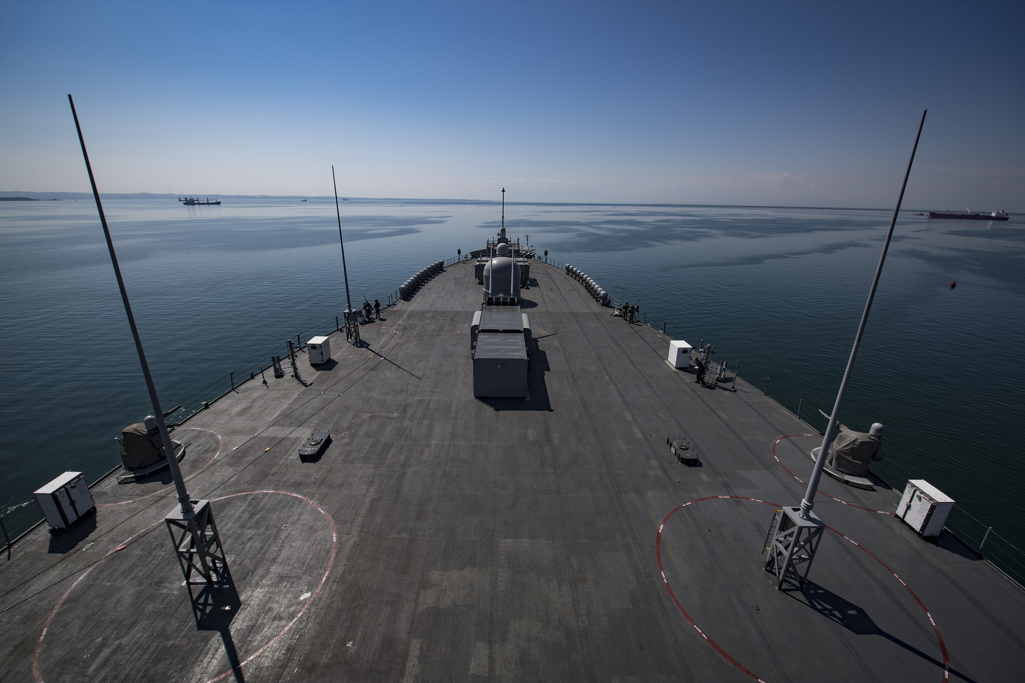 Με τις ΗΠΑ ως τιμώνενη χώρα στην 83η ΔΕΘ, το επιβλητικό πλοίο Διοίκησης και Ελέγχου κλάσης «Blue Ridge» του 6ου Στόλου ανέλαβε αυτή τη φορά καθήκοντα «δημοσίων σχέσεων» καθώς στο κατάστρωμα του βρέθηκαν για ξενάγηση υψηλόβαθμοι Έλληνες και Αμερικανοί αξιωματούχοι ενώ εκεί πραγματοποιήθηκε και η δεξίωση με επίτιμους καλεσμένους τον υπουργό Εθνικής Άμυνας Πάνο Καμμένο και τον πρεσβευτή των ΗΠΑ στην Ελλάδα Τζέφρι Πάιατ.