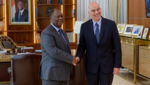 Την πρώτη επίσκεψη Έλληνα υπουργού Εξωτερικών στην Ακτή του Ελεφαντοστού πραγματοποιεί σήμερα ο Νίκος Δένδιας, με την οποία ξεκίνησε την τριήμερη περιοδεία του στη Δυτική Αφρική. Κατά την έναρξη της επίσκεψης, ο υπουργός Εξωτερικών έφτασε στο Αμπιτζάν, στη μεγαλύτερη πόλη της Ακτής του Ελεφαντοστού, όπου έγινε δεκτός από τον Πρόεδρο της χώρας, Αλασάν Ουαταρά (Alassane Ouattara).