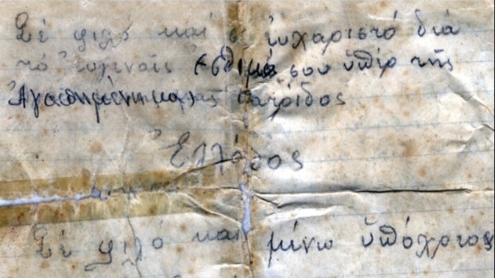 «Αγαπημένη πατριώτισσα… Η σημερινή ημέρα είναι χωρίς υπερβολήν μια από τις ποιο ευτηχησμένες της ζωής μου… Εις εμέ λοιπόν κατά την διανομήν επεφύλαξε η τύχη να κληρωθή το δικό σας δέμα… Εκπληρών λοιπόν την επιθυμίαν σας, σας γράφω και σας απαντώ… Να είσθαι βεβαία ηρωική πατριώτισσα ότι ο Έλλην στρατιώτης θα εκτελέση το καθήκον του παντού και πάντοτε. Πολύ δε περισσότερον όταν σκέπτετε ότι πίσω από αυτόν ευρίσκεται η σεμνή Ελληνοπούλα που περιμένη από αυτόν την ελευθερίαν και την σωτηρίαν της τιμής της…».
