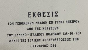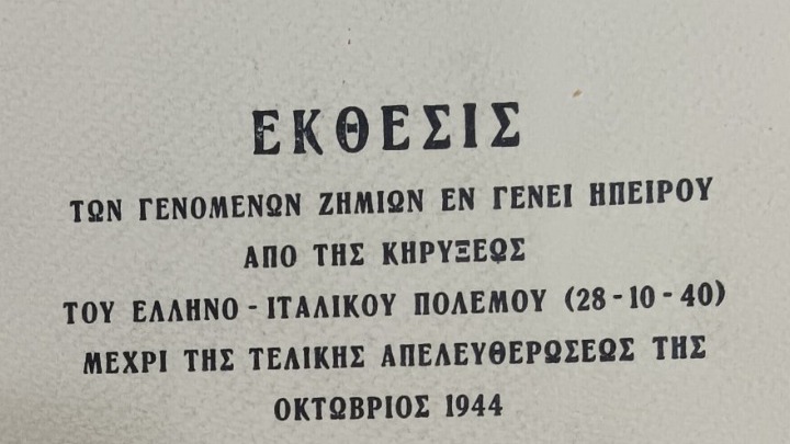 Ο υπουργός Παιδείας Δημήτριος Μπαλάνος της Κυβέρνησης Πέτρου Βούλγαρη, με επιστολή του προς το Γενικό Επιτελείο Στρατού τις 31/5/45 ,ανακοινώνει, ότι με απόφαση του υπουργικού Συμβουλίου, συστάθηκε Επιτροπή, η οποία θα μεταβεί στην Ήπειρο, προκειμένου να διαπιστώσει και να καταγράψει τις ζημιές του πολέμου, της ιταλικής και γερμανικής Κατοχής.