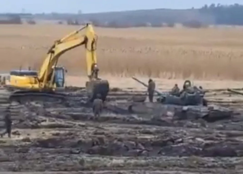 Βίντεο που δημοσιεύτηκε στο Liveuamap και θεωρείται ότι απεικονίζει ασκήσεις στην περιοχή του Rostov, κοντά στα ουκρανικά σύνορα, δείχνει τουλάχιστον δώδεκα ρωσικά άρματα κολλημένα, ενώ ένας άνδρας με πολιτικά ρούχα προσπαθεί με τη βοήθεια ενός εκσκαφέα να απελευθερώσει ένα από αυτά.