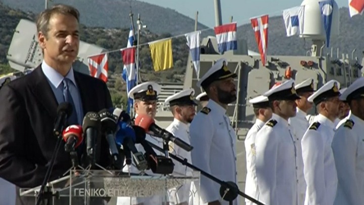 Πραγματοποιήθηκε νωρίτερα σήμερα η τελετή ονοματοδοσίας της νέας πυραυλακάτου του Πολεμικού Ναυτικού «Υποπλοίαρχος Βλαχάκος», της 7ης και τελευταίας της κλάσης ΡΟΥΣΣΕΝ, παρουσία του πρωθυπουργού Κυριάκου Μητσοτάκη, ο οποίος απηύθυνε χαιρετισμό.