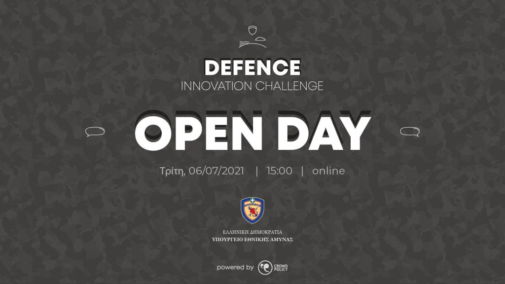 Το Defence Innovation Challenge διοργανώνεται από το Υπουργείο Εθνικής Άμυνας σε συνεργασία με την ελληνική εταιρεία καινοτομίας και τεχνολογίας Crowdpolicy.