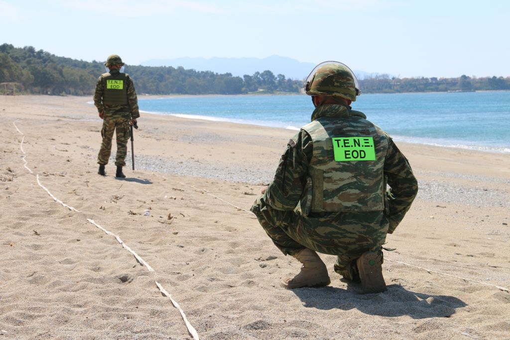 Συγκεκριμένα, ένα βλήμα όλμου των 81 χιλιοστών, πέντε φυσίγγια κι ένας κάλυκας μεγάλης διαμέτρου εντοπίστηκαν στην παραλία “Λεγραινά” και απομακρύνθηκαν από κλιμάκιο του Τ.Ε.Ν.Ξ. (Τάγμα Εκκαθάρισης Ναρκοπεδίων Ξηράς) του Ελληνικού Στρατού παρουσία κλιμακιών του Λιμενικού, της Πυροσβεστικής και ασθενοφόρου.