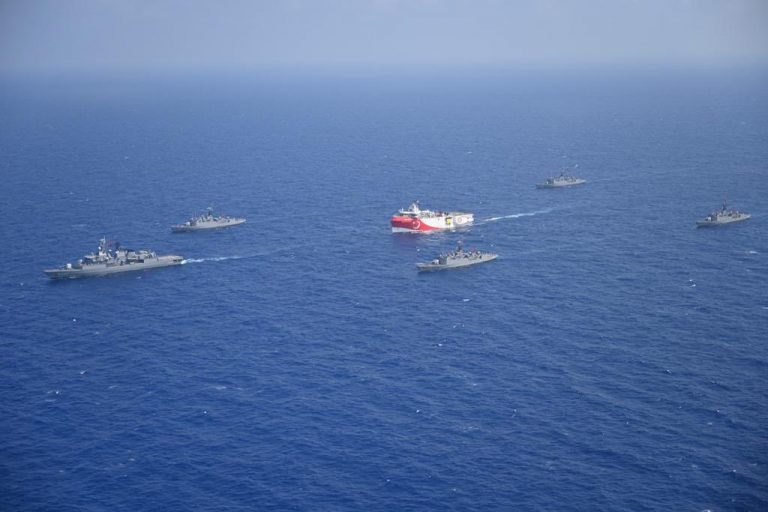 Πριν λίγη ώρα, το τουρκικό υπουργείο άμυνας δημοσίευσε φωτογραφίες του Ορούκ Ρέις με τη συνοδεία του, των 5 πολεμικών πλοίων.