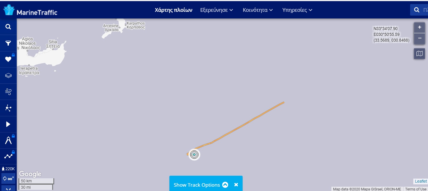 Λίγο πριν φτάσει στα δυτικά όρια της παράνομης τουρκικής NAVTEX, το ερευνητικό πλοίο Oruc Reis άλλαξε πορεία και κατευθύνεται προς τα ανατολικά.