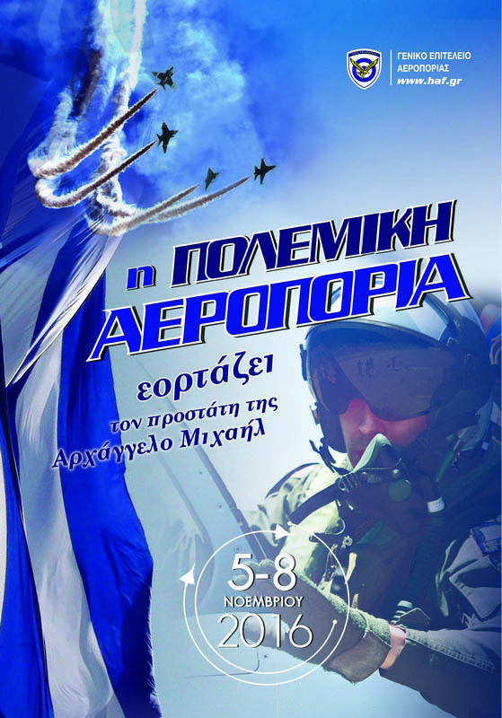 Ανακοινώθηκε από το Γενικό Επιτελείο Αεροπορίας το πρόγραμμα των εορταστικών εκδηλώσεων κατά τη διάρκεια του εορτασμού του Προστάτη της Πολεμικής Αεροπορίας Αρχαγγέλου Μιχαήλ, από το Σάββατο 5 έως και την Τρίτη 8 Νοεμβρίου 2016.