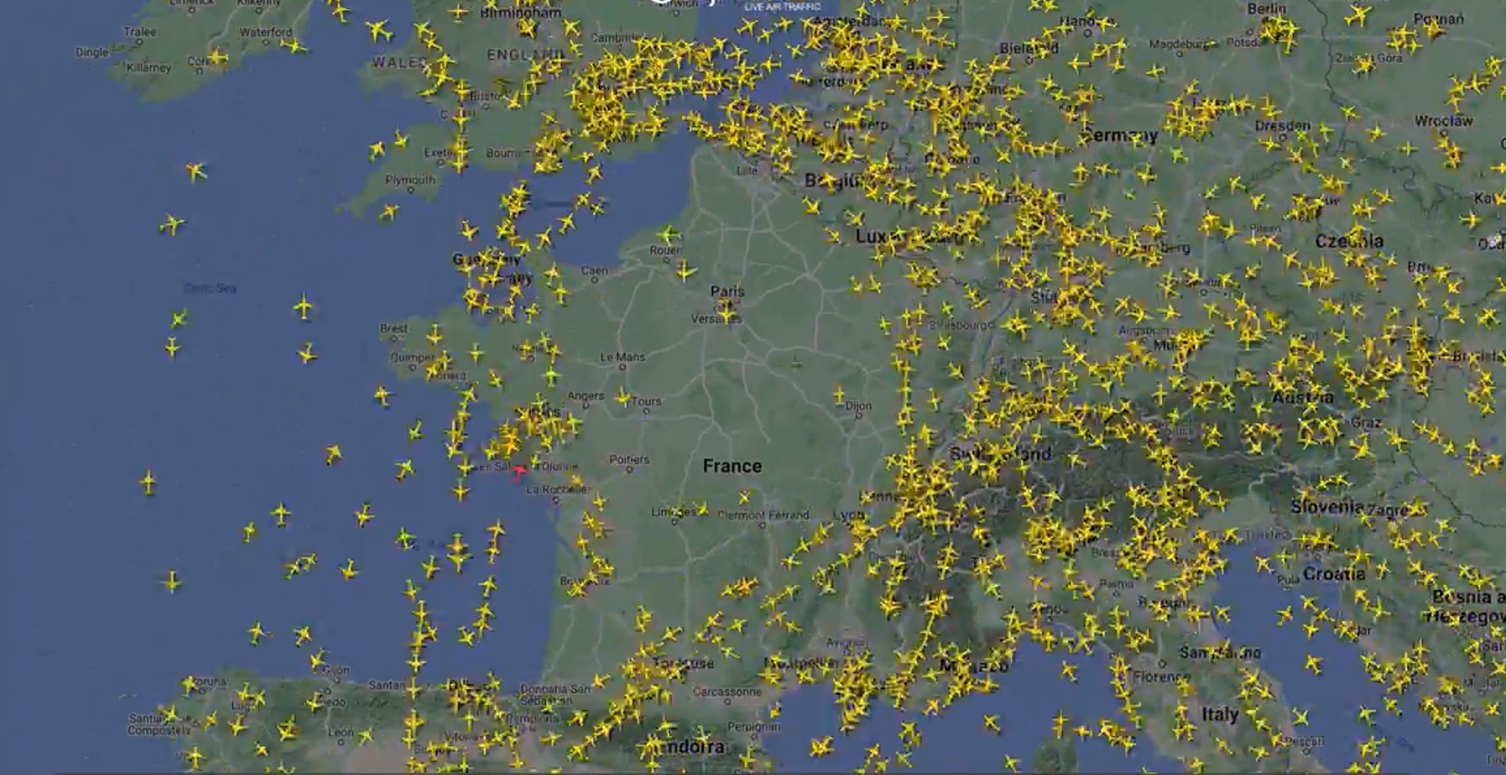 Απεικόνιση από το flightradar 24 της απαγόρευσης πτήσεων που είχε επιβληθεί χθες σε μεγάλο μέρος της βορειοανατολικής Γαλλίας για την προστασία της τελετής έναρξης των Ολυμπιακών Αγώνων.