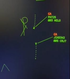 Βίντεο που εμφανίστηκε στο Διαδίκτυο αλλά δημοσιοποίησαν και αμερικανικά ΜΜΕ (και μεταφέρουμε με επιφύλαξη), εμφανίζεται να δείχνει στιγμιότυπο της εναέριας κυκλοφορίας τη στιγμή του συμβάντος της σύγκρουσης του CRJ701ER («N709PS», Πτήση 5342) και του στρατιωτικού ελικοπτέρου VH-60 (που ορίζεται ως PAT25- Priority Air Transport), στο οποία οποίο υπάρχει προειδοποίηση κινδύνου εναέριας σύγκρουσης CA (Collision).