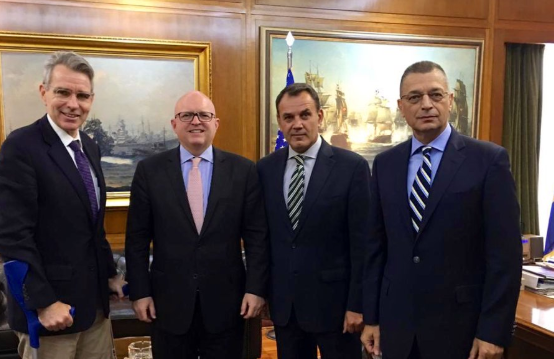 Pleased to meet with AAS Reeker and Minister @NPanagioto to follow up modernizing U.S.-Greece military agreements, upcoming joint exercises, and work to remove sunken dredger at the Alexandroupoli port. Our commitment to U.S.-Greece defense and security relationship is iron-clad. pic.twitter.com/6KOMVhChCy